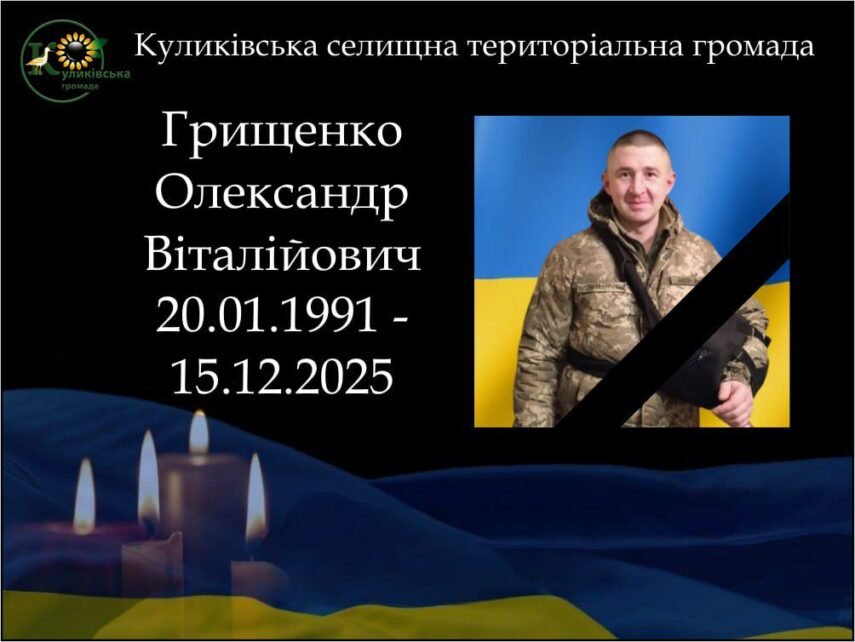 Трагічна звістка надійшла в громаду на Чернігівщині. Раптово не стало захисника з Куликівки Олександра Грищенка. Про це повідомляє Куликівська селищна громада....