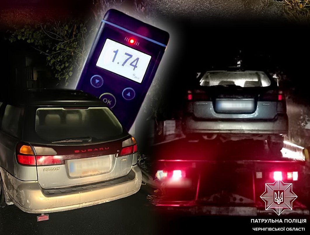 Перший випадок стався 19 жовтня близько опівночі на вулиці Любомира Боднарука у Чернігові. Патрульні зупинили автомобіль Subaru Outback, за кермом якого перебував 42-річний чоловік з ознаками алкогольного сп‘яніння. Огляд за допомогою приладу Драгер показав 1,74 проміле.