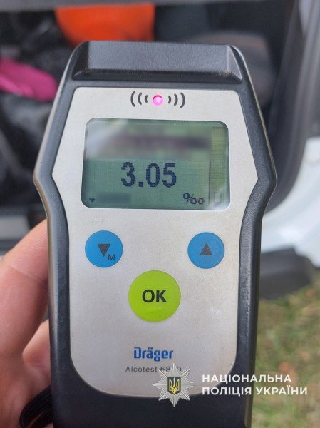 «Апарат показав, що вміст алкоголю в крові чоловіка сягав 3,05 проміле – майже у 15 разів вище за гранично допустиму межу (0,2 проміле)», – йдеться у повідомленні.
