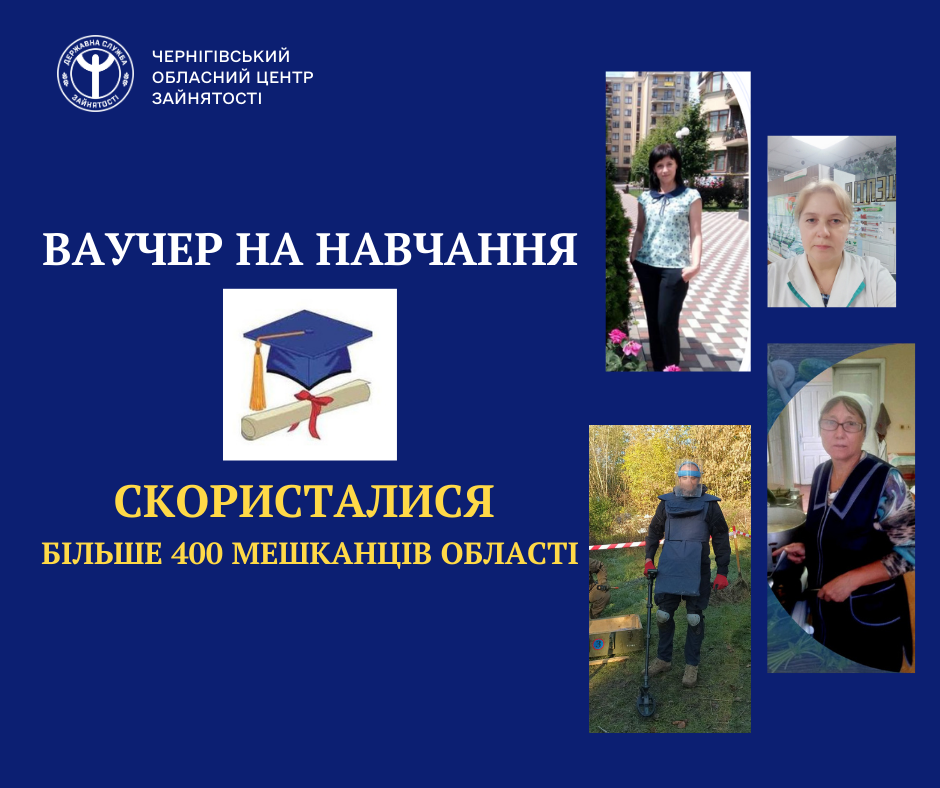 Як повідомляє Чернігівський центр зайнятості, цього року 412 мешканців Чернігівщини скористалися ваучерами, які дозволяють здобути нову спеціальність або підвищити кваліфікацію. Серед них переважна більшість (335 осіб) – це люди віком 45+; 41 ВПО, 25 громадян з інвалідністю, 11 учасників бойових дій.