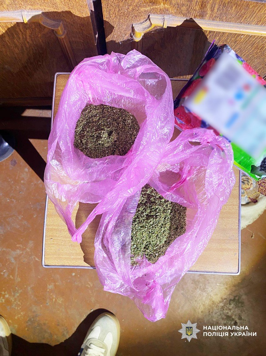 В ході обшуків вилучено сумарно понад пів сотні зіп-пакетів з розфасованими наркотиками рослинного походження та два пакети такої ж речовини, підготовленої до фасування. Також вилучено значний запас пакувальних засобів, електронні ваги та посуд з нашаруваннями рослинної речовини, пристрої для споживання наркотиків, готівкові кошти у вітчизняній та іноземній валютах, банківські картки, блокнот з чорновими записами, інші речові докази злочинної діяльності. Вилучене направлено на проведення експертних досліджень.