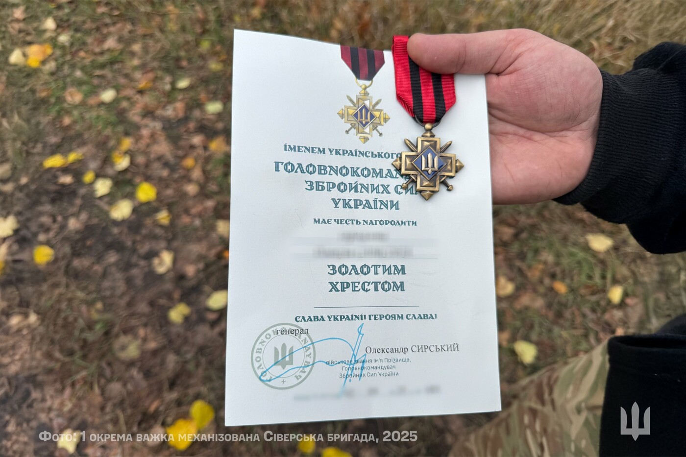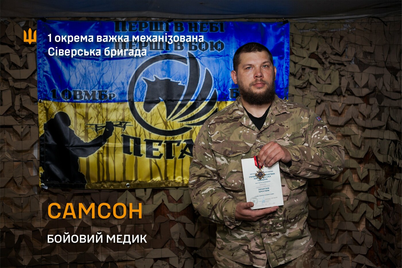 Бойового медика з Чернігова позивним Самсон відзначили Почесним нагрудним знаком Головнокомандувача Збройних Сил України – «Золотий хрест». Про нагородження повідомила 1-ша окрема танкова Сіверська бригада.
