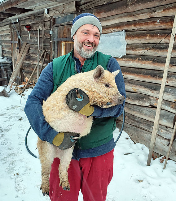 — Весь теплий період року мангалиці перебувають на природному випасі, бо майже 80% їхнього раціону становить трава. Завдяки густому «вовняному» покриву ці тварини добре переносять зимовий холод й можуть запросто перезимувати на подвір’ї. Викопують ями, в яких і сплять. Порода дуже перспективна, бо по-перше їхнє утримання не надто витратне. Сало угорської мангалиці містить значно менше холестерину, ніж у звичайних свиней. При правильному раціоні воно має консистенцію вершкового масла і його можна просто намазувати на хліб. Нині нарощуємо поголів’я, бо вже є де розвернутися. Супутньо продаємо підсвинків, які трохи дорожчі за звичайних домашніх поросят, — розповів Роман Дроменко.