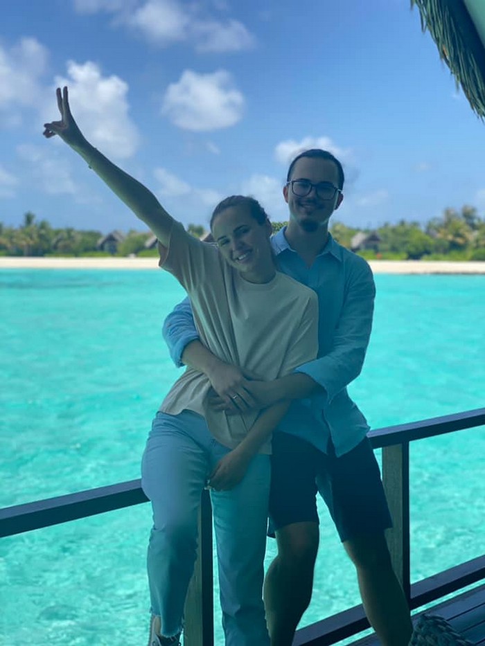 Познакомились ребята год назад, романтические отношения завязались, когда оба они оказались в итальянском городке Белладжио. Там они опоздали на вечерний автобус, попали под дождь и пришлось заночевать в отеле. Всю одежду пришлось повесить сушиться, не в чем было даже выйти в ресторан, чтобы поужинать. Поэтому ребята, не долго думая воспользовались напитками, которые оказались в мини-баре и принялись смотреть серила «Касабланка» на мобильном телефоне.