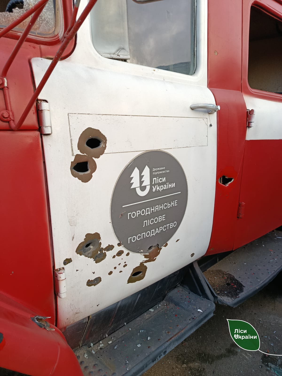 Внаслідок удару пошкоджено техніку підприємства, зокрема – пожежний автомобіль, що використовується для гасіння лісових пожеж.