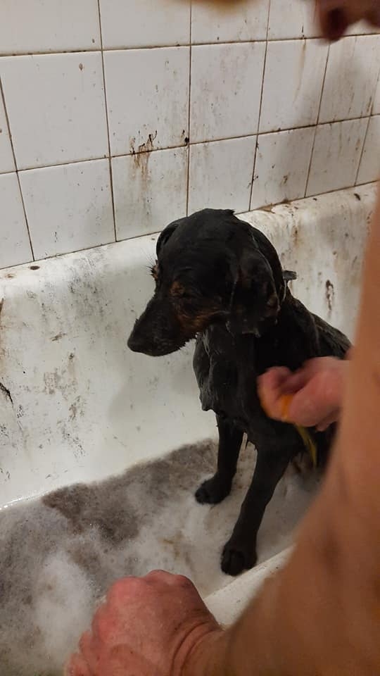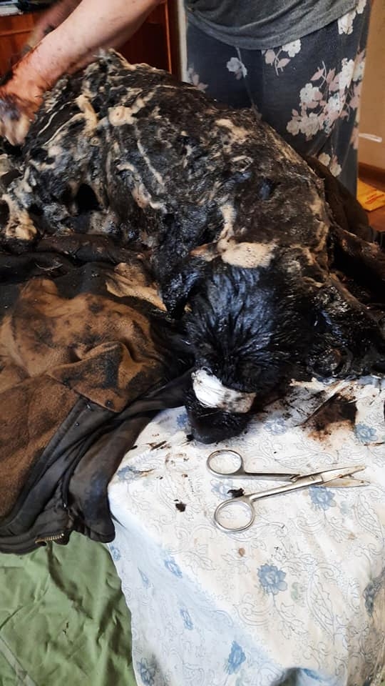 По словам Натальи Анатольевны, в течение следующей недели волонтеры ежедневно заворачивали собаку в одеяло и возили на такси в вет-клинику. Параллельно отмывали от мазута.