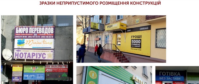 На фото — зразки неприпустимого розміщення конструкцій з Концепції