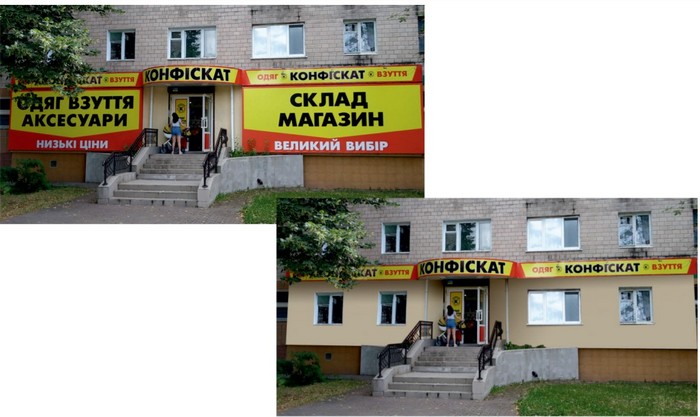 На фото — приклади того, як мають підприємці змінити рекламне оформлення своїх закладів