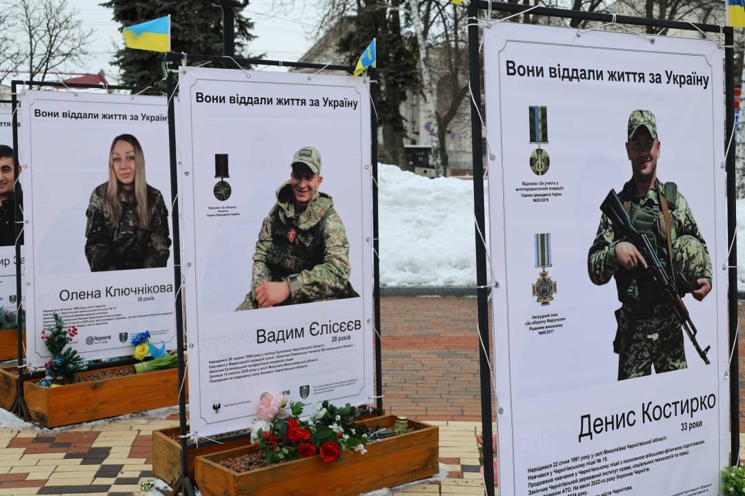 На Алеї Героїв у Чернігові оновили інформаційні стенди – експозицію доповнили світлинами та короткими біографіями ще 60 військовослужбовців, які віддали життя, захищаючи місто та Україну.