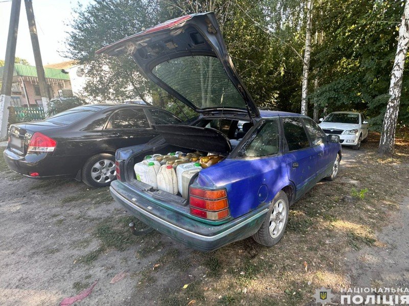 Патрулюючи територію, правоохоронці зупинили транспортний засіб під керуванням 65-річного чоловіка. При огляді автівки поліцейські виявили 17 каністр з пальним.