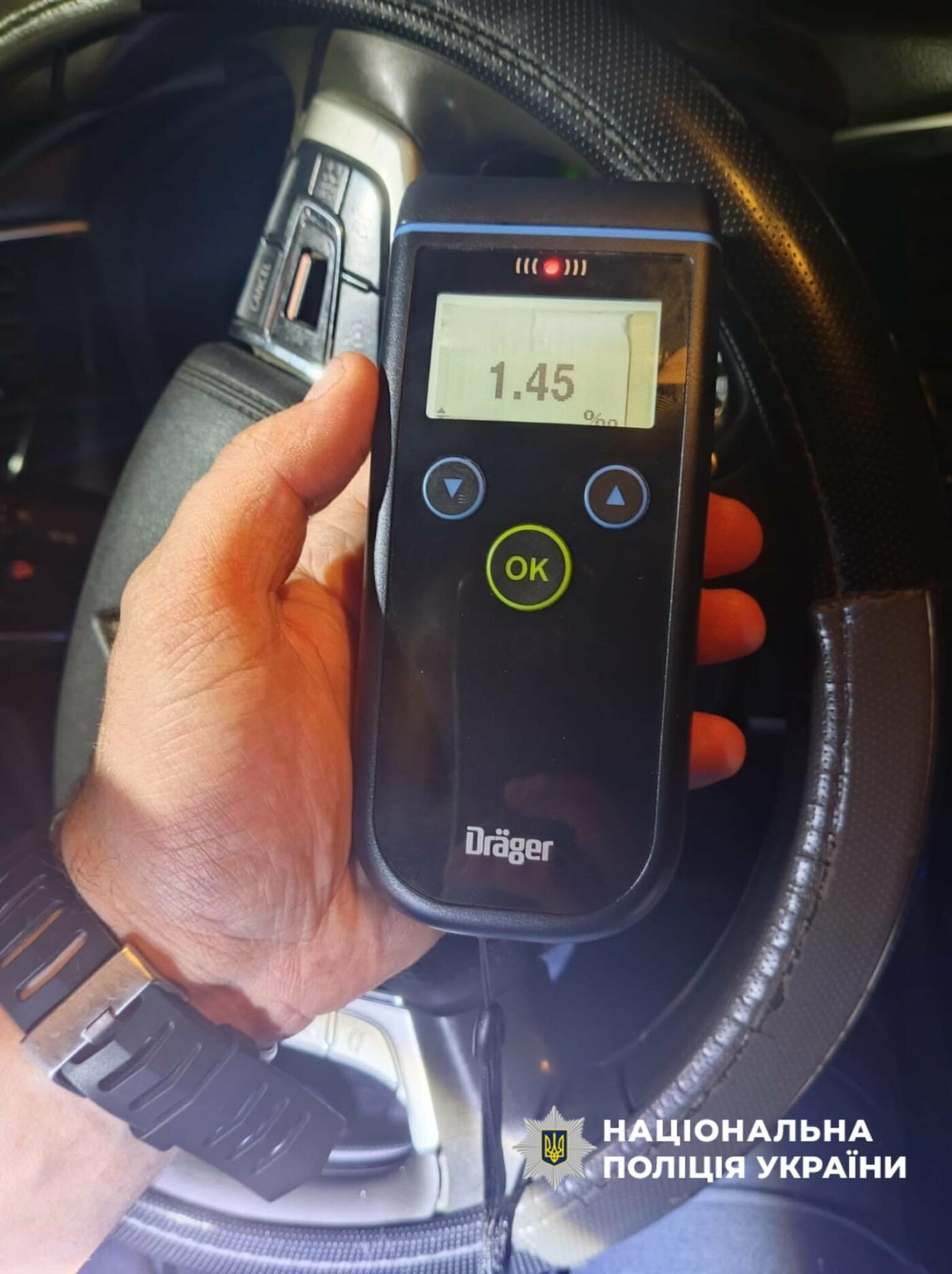 Під час спілкування з водієм легковика поліцейські виявили ознаки алкогольного сп’яніння. Чоловік від пояснень відмовився, але погодився пройти тест, який показав 1,45 проміле алкоголю – це у понад 7 разів вище за допустиму норму.