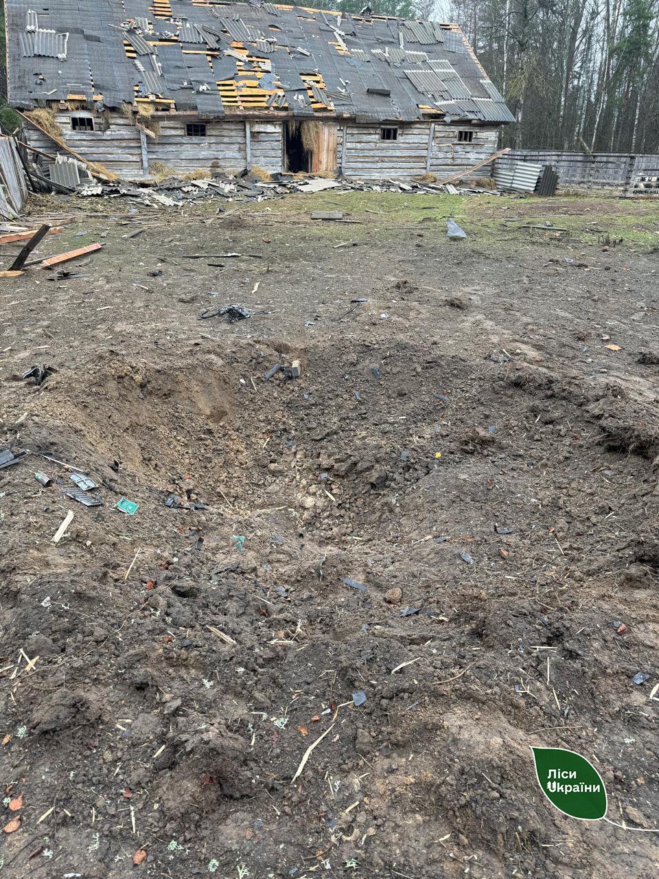 Ударом пошкоджено мисливський будиночок, який використовувався для роботи лісівників та проведення природоохоронних заходів. На щастя, постраждалих серед працівників немає.