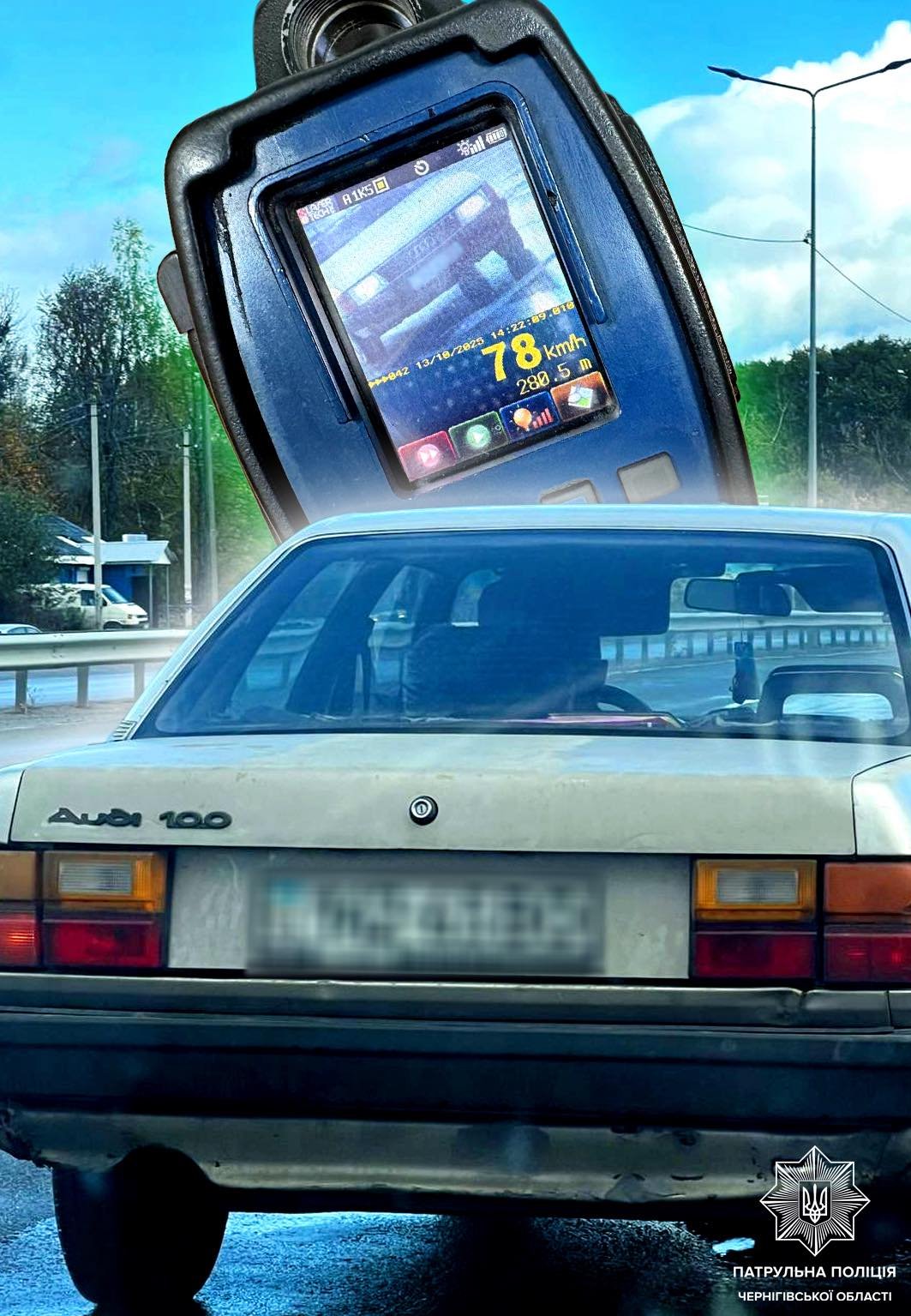 13 жовтня близько 14:00 на автодорозі М-01 (Київ – Чернігів – Нові Яриловичі) у селі Киселівка патрульні зупинили автомобіль Audi 100, який рухався зі швидкістю 78 км/год у населеному пункті, де дозволено не більше 50 км/год.