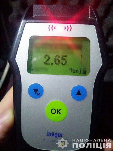Огляд у визначеному законом порядку за допомогою приладу «Драгер» засвідчив наявність в крові жінки 2,65 проміле алкоголю. Це у 13 разів перевищує гранично допустиму межу (0,2 проміле).