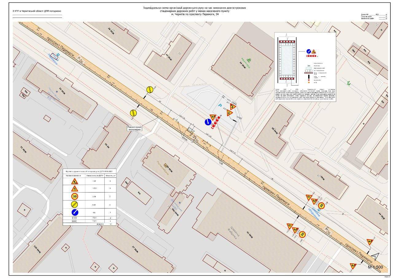 Передбачено звуження проїзної частини та обмеження швидкісного режиму до 30 км/год. На проспекті встановлять тимчасові попереджувальні дорожні знаки та напрямні засоби.
