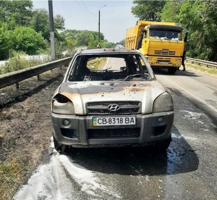 – Повідомлення про пожежу автомобіля надійшло до поліції 23 червня о-пів на першу годину дня, – розповіла Сусіди.City речниця поліції Чернігівської області Юлія Ковтун. – Через пожежу був ускладнений рух транспорту в обох напрямках, приблизно з десяток авто стояли на місці загоряння.