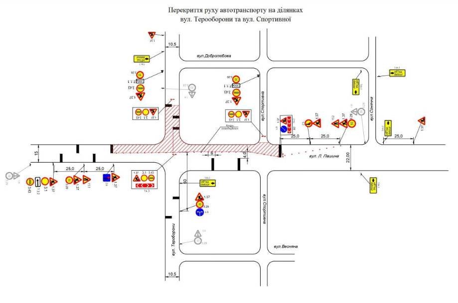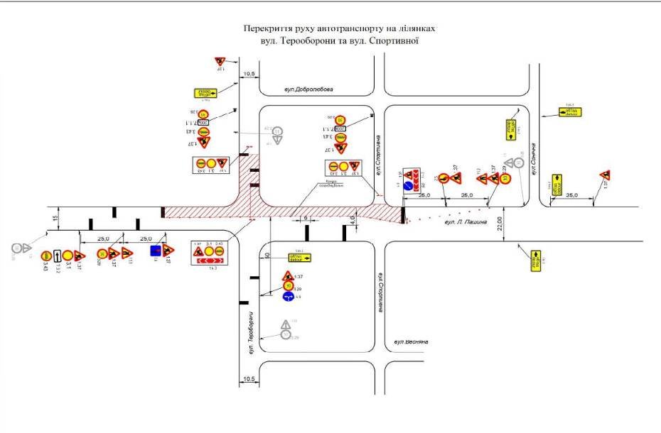 Перекриття рух автотранспорту на ділянках вулиці Тероборони: