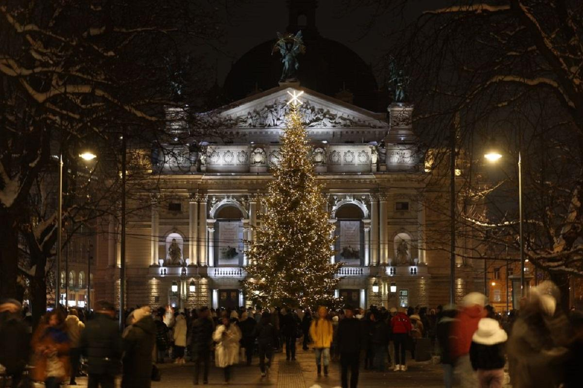 У Львові встановили живу ялинку, яку місту подарувала подружня пара. Для декорування використали ілюмінацію та іграшки, придбані в попередні роки.