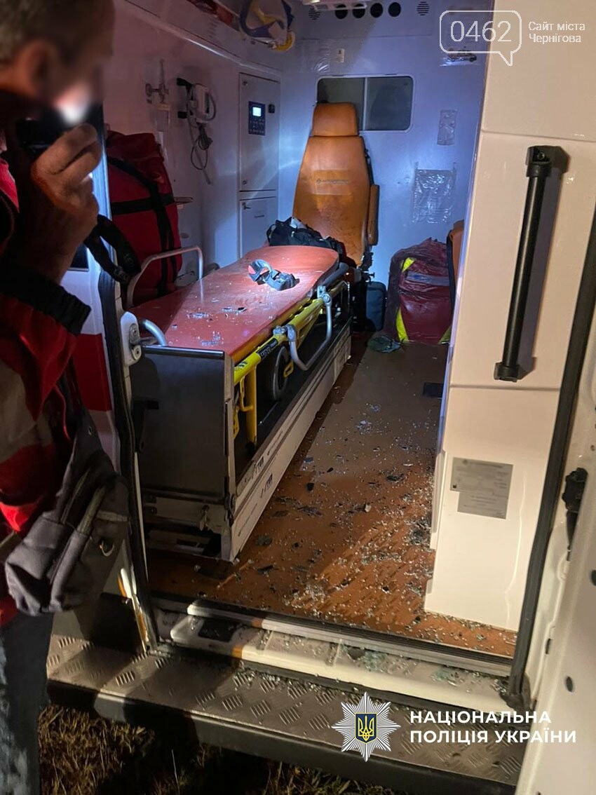 Увечері російські безпілотники вдарили по Чернігівському району. Поранень зазнали троє цивільних, які саме їхали автівкою — водій і дві пасажирки. На виклик виїхали працівники «екстренки» — був повторний удар. Поранень зазнали і троє медпрацівників. Всі шестеро — у лікарні. Пошкоджені автівки.
