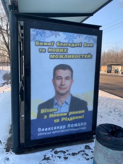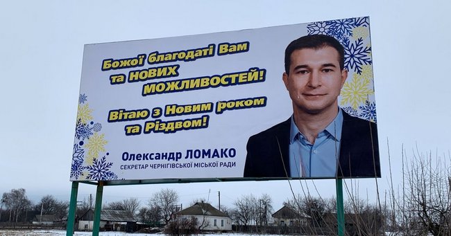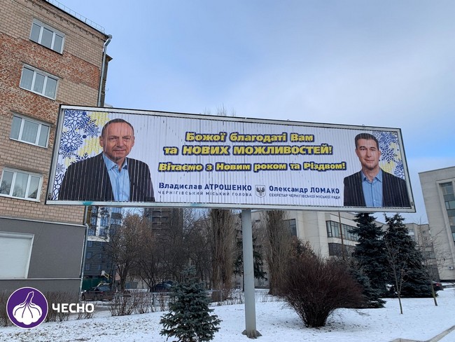 “Соціальну” рекламу з новорічними вітаннями із власними обличчями міські чиновники розміщують часто, і це стосується не лише Чернігова. Але ситуація тут особлива тим, що вже за два місяці у 206-му окрузі відбудуться вибори до Верховної Ради.