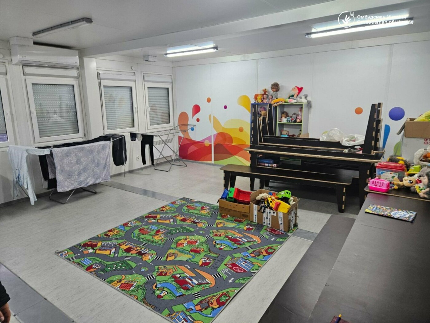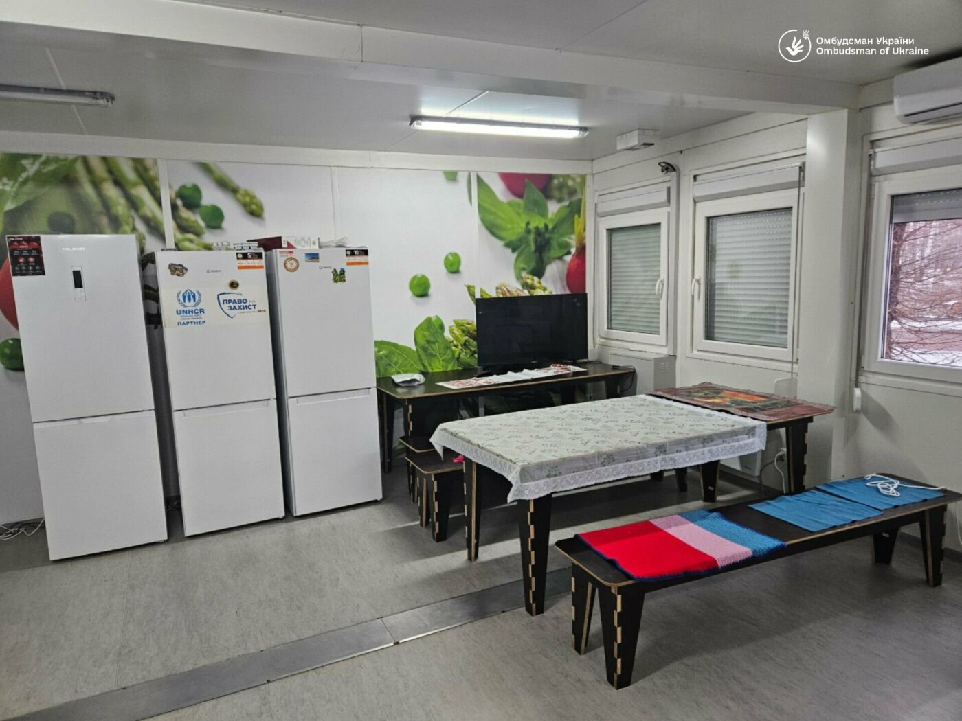 У кожному модульному будинку облаштовані кімнати для проведення зборів та організації дозвілля, зокрема й дітей. Є столи, лави, телевізори, встановлено кондиціонери. Для дітей створені ігрові куточки.