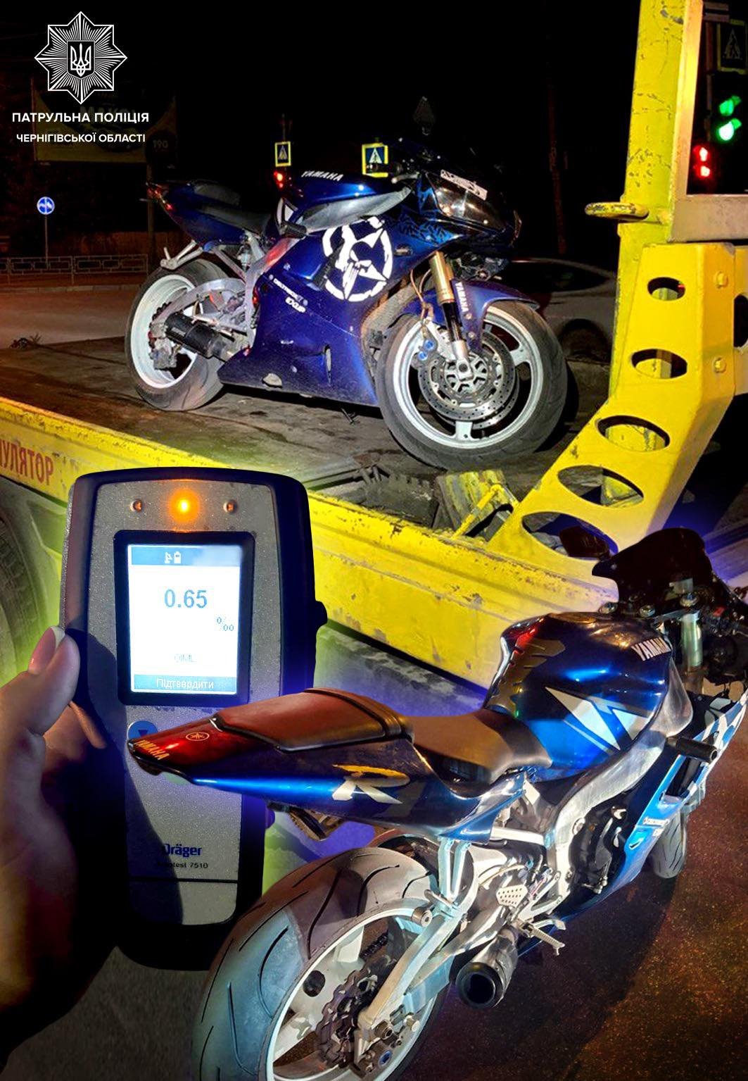 У Чернігові 27 серпня патрульні зупинили мотоцикліста, який порушував правила дорожнього руху та намагався втекти від правоохоронців.