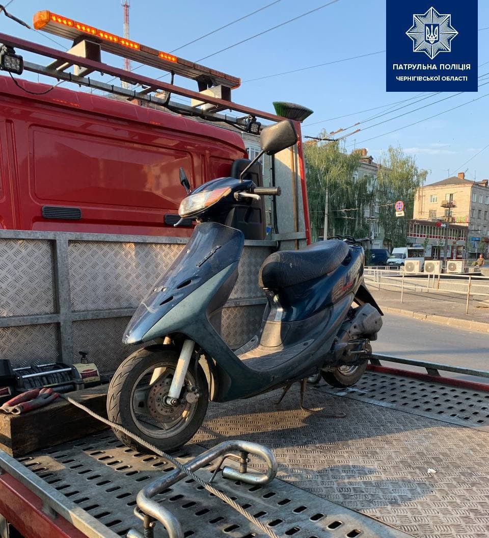Відносно 19-річного водія патрульні склали ряд адміністративних матеріалів, зокрема: за ч.2 ст. 126 (Керування транспортним засобом особою, яка не має права керування), ч. 5 ст. 121 (Порушення правил користування мотошоломами), ч.1 ст. 130 (Керування у стані сп’яніння) КУпАП. Про це повідомляє Патрульна поліція Чернігівської області.