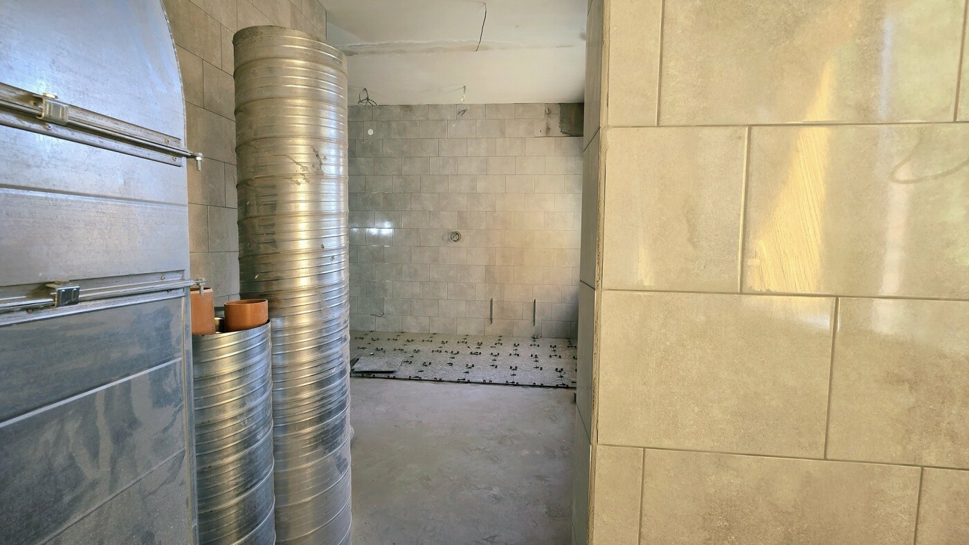 Наприкінці 2024 року роботи були призупинені через зміну підрядника. У травні 2025-го новий виконавець відновив будівництво. Зараз робітники оздоблюють стіни та почали укладання плитки на підлозі.