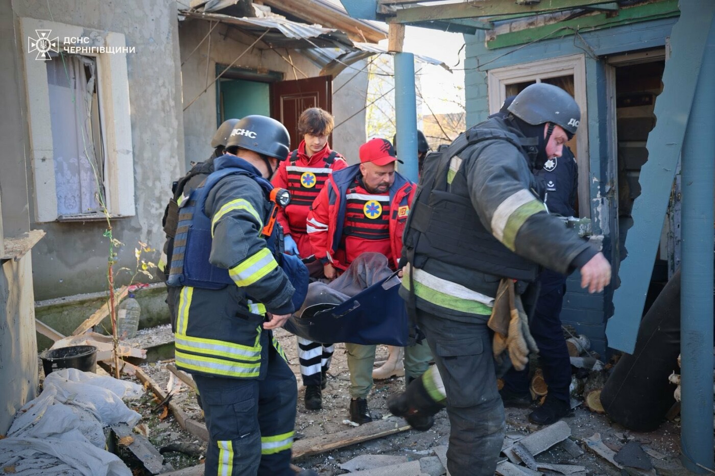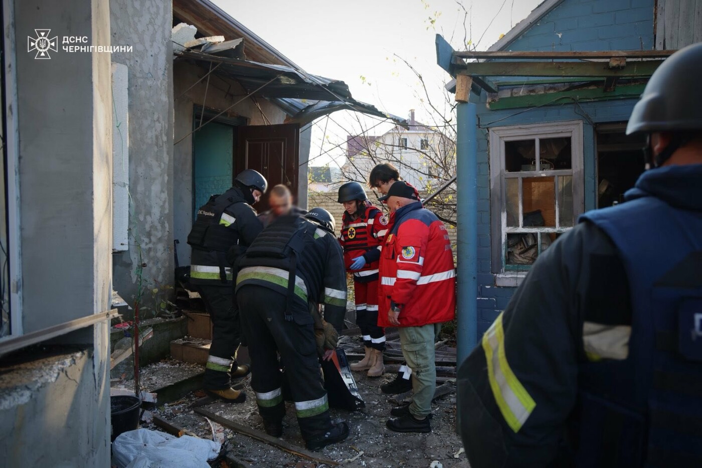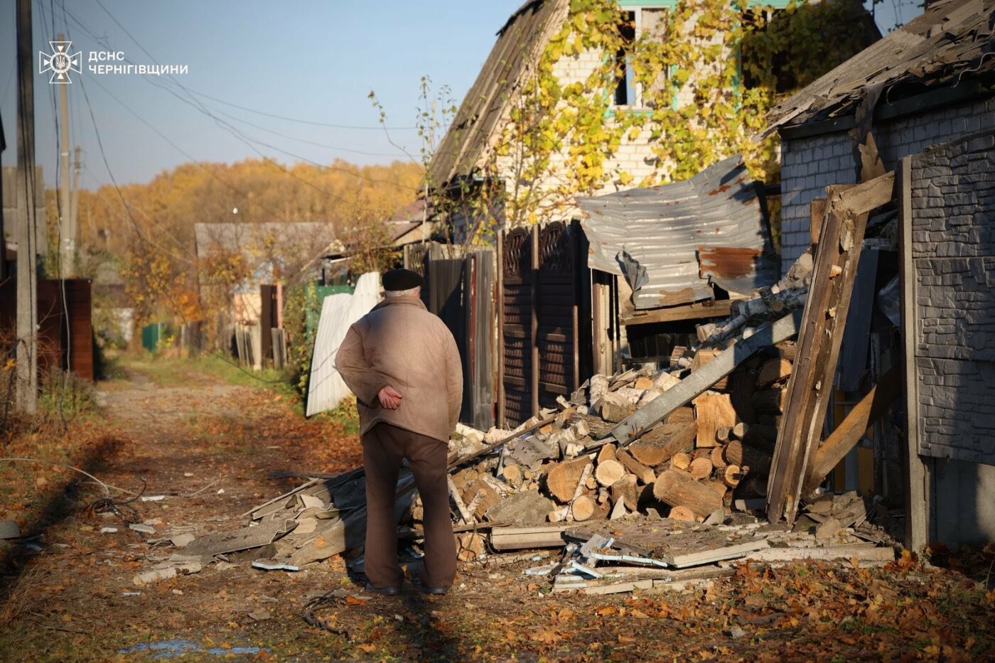 Вдень 27 жовтня Чернігів зазнав атаки російських безпілотників. Внаслідок обстрілів пошкоджено чотири житлові будинки, одна людина отримала травми. Рятувальники надали допомогу працівника екстреної медичної допомоги у транспортуванні постраждалого до карети швидкої.