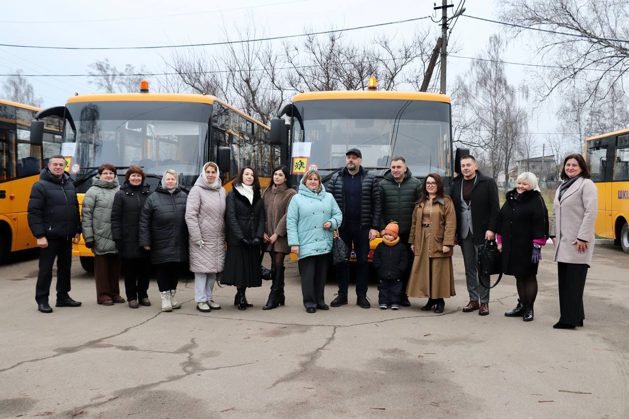 Останні в цьому році. Шість шкільних автобусів 19 грудня вирушили в громади Чернігівщини. Новий транспорт передали шістьом територіальним громадам: Височанській, Носівській, Гончарівській, Добрянській, Седнівській і Холминській.