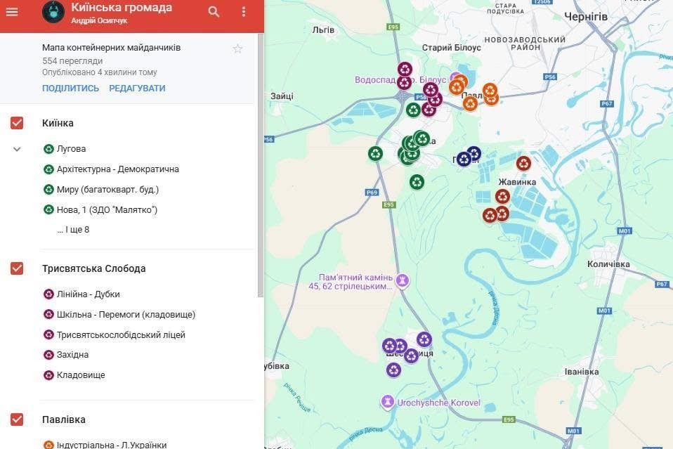 Для зручності мешканців громада презентувала інтерактивну мапу контейнерних майданчиків. За її допомогою можна швидко знайти найближче місце для сортування, переглянути адресу й фото майданчика, прокласти маршрут, а також ознайомитися з переліком майданчиків у кожному населеному пункті.