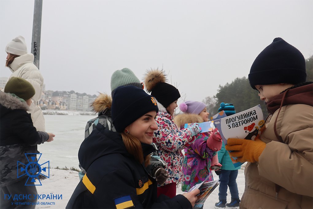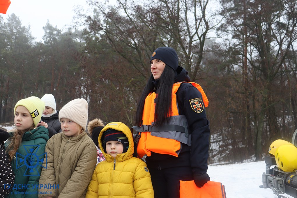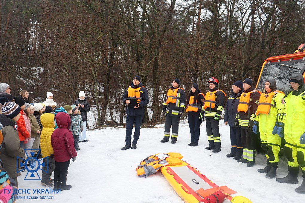 Діти з захопленням дивилися на роботу рятувальників, після чого задавали багато уточнюючих питань стосовно надання допомоги людині, яка провалилася під лід та, що треба робити, якщо крига тріснула під ногами.