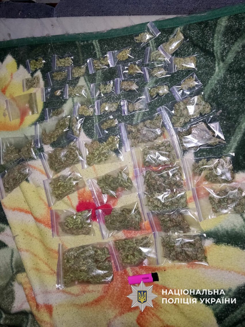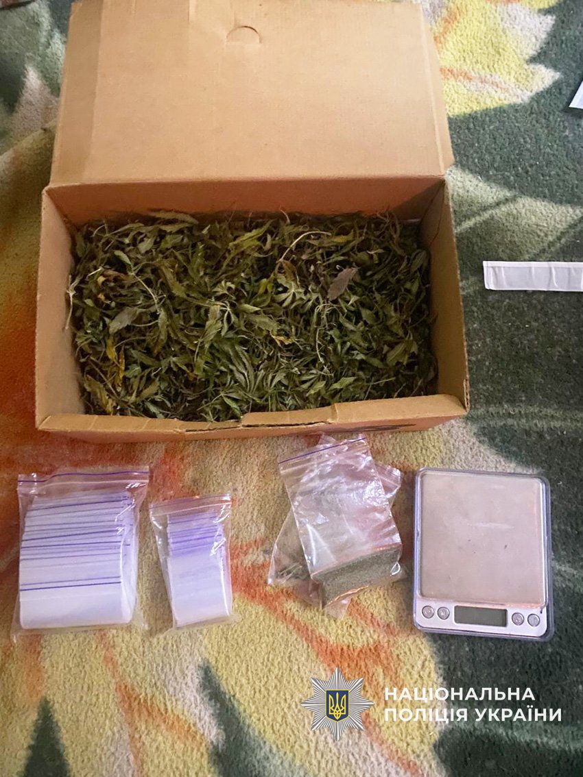 Правоохоронці вилучили понад 50 поліетиленових зіп-пакетів із речовиною рослинного походження, схожою на канабіс, картонну коробку з нерозфасованим наркозіллям, електронні ваги, пакети для фасування, пристрій для куріння, мобільний телефон та інші докази протиправної діяльності. Вилучене направлено на експертне дослідження.