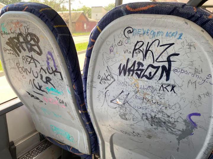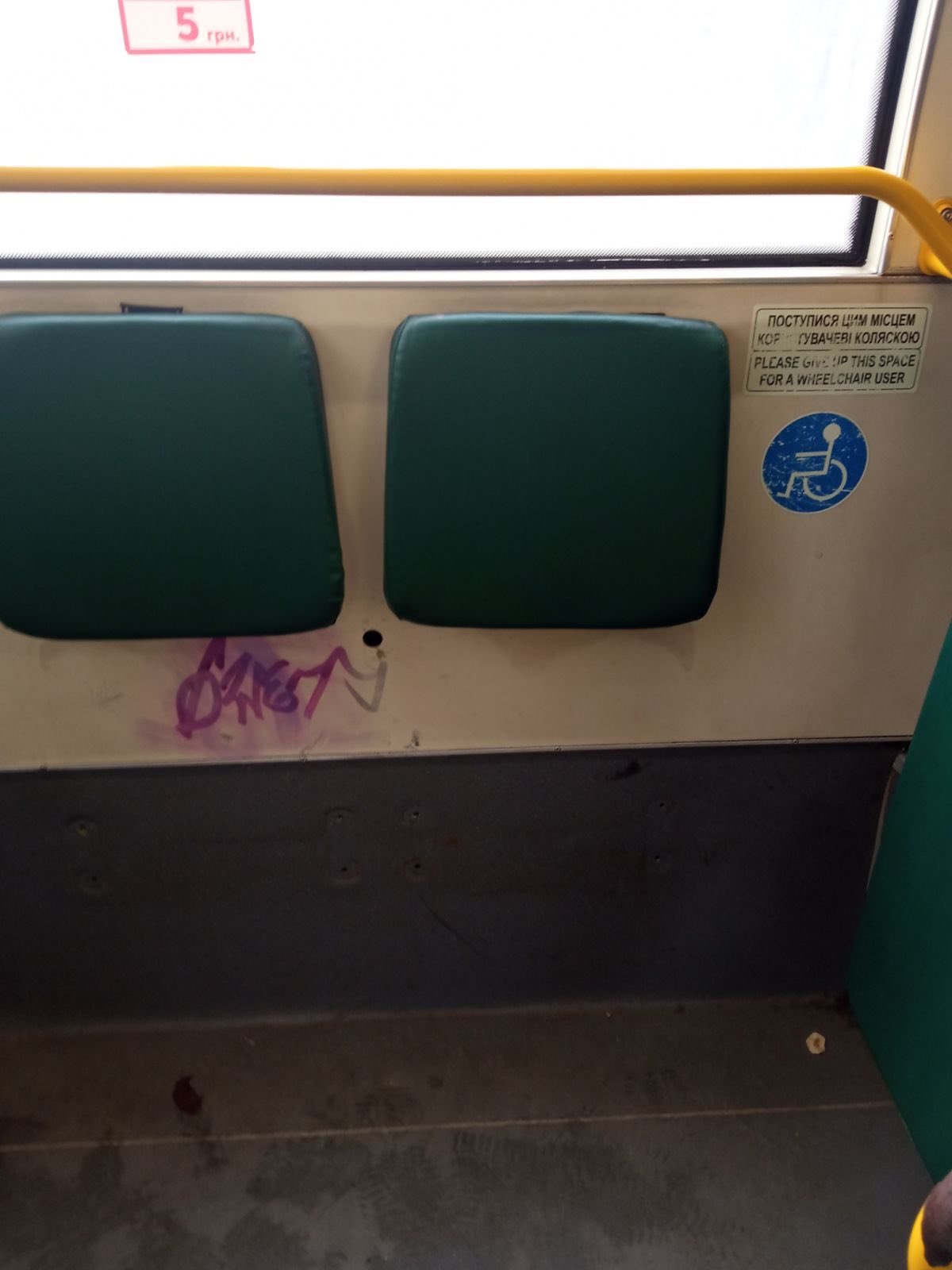 У Чернігові почастішали випадки псування майна громадського транспорту. Невідомі обмальовують сидіння та стіни в салонах автобусів і тролейбусів, а також крадуть аварійні молоточки, які призначені для розбиття скла у разі надзвичайної ситуації.