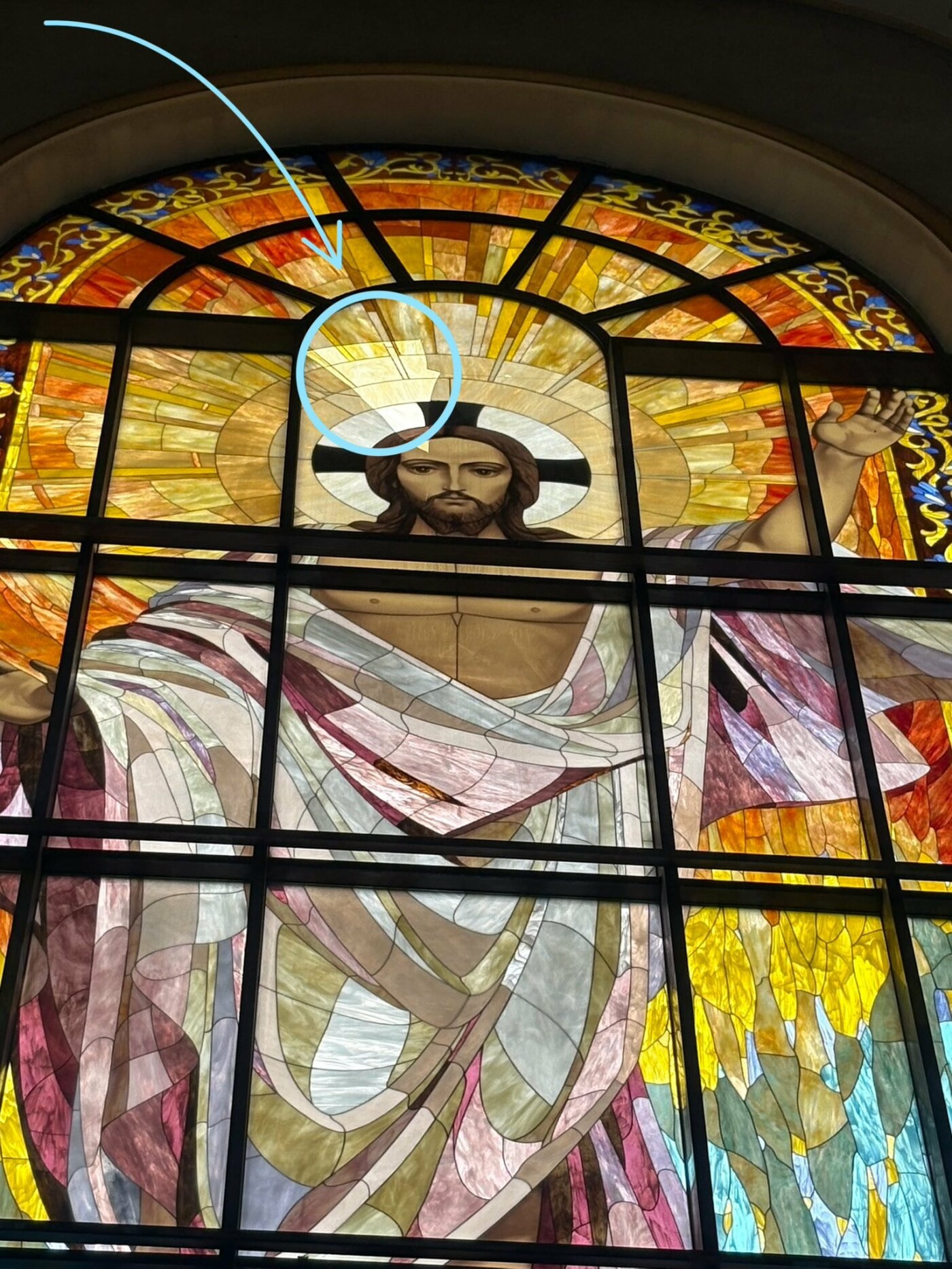 Мова йде про вітраж Воскресіння Христового в храмі Всіх святих Чернігівських.