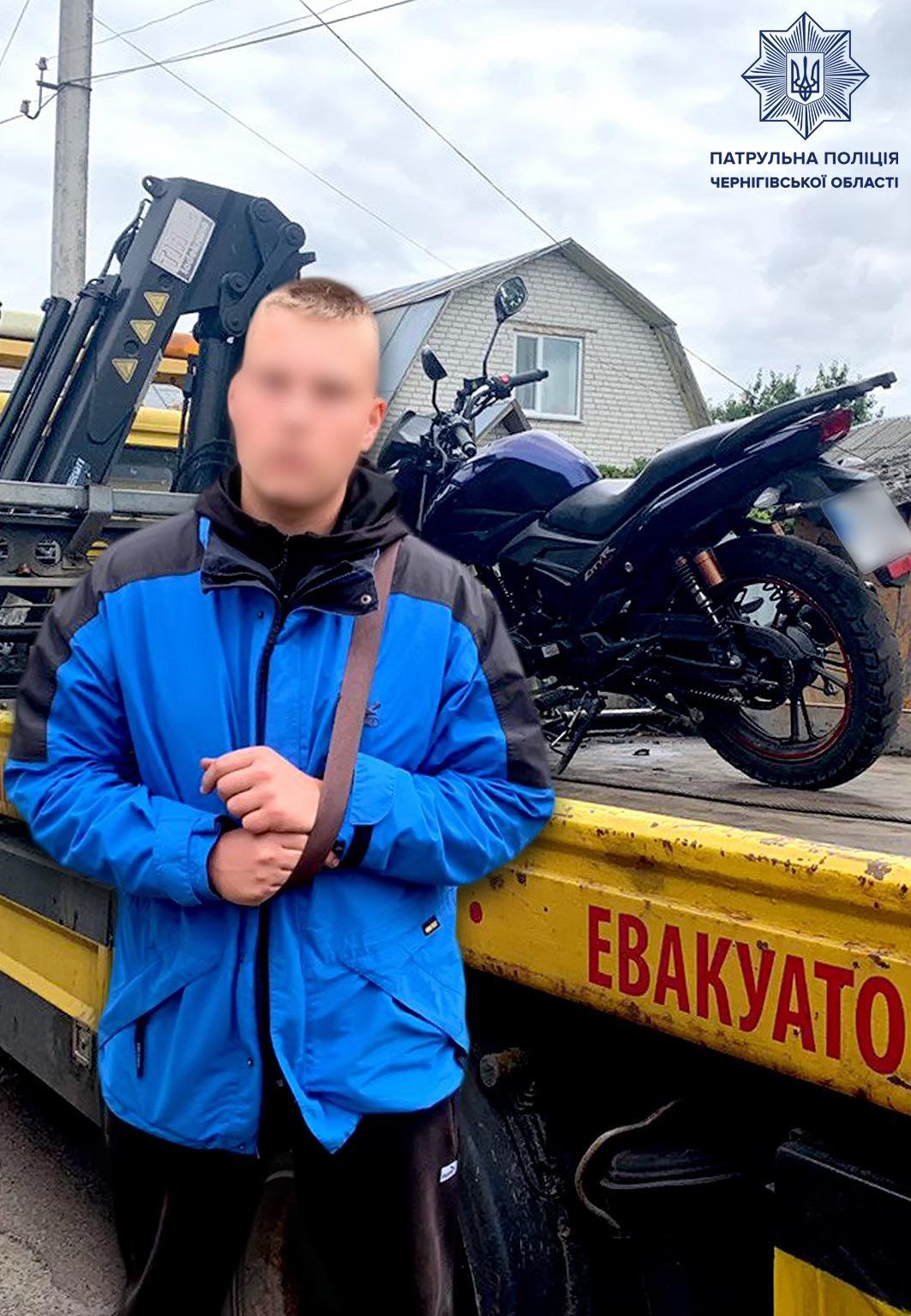 У Чернігові зупинили 16-річного підлітка, який, керуючи мотоциклом без посвідчення водія, намагався втекти від поліції. Інспектори склали на нього адмінматеріали, повідомили матір та ювенальну превенцію, а транспортний засіб евакуювали на спецмайданчик.