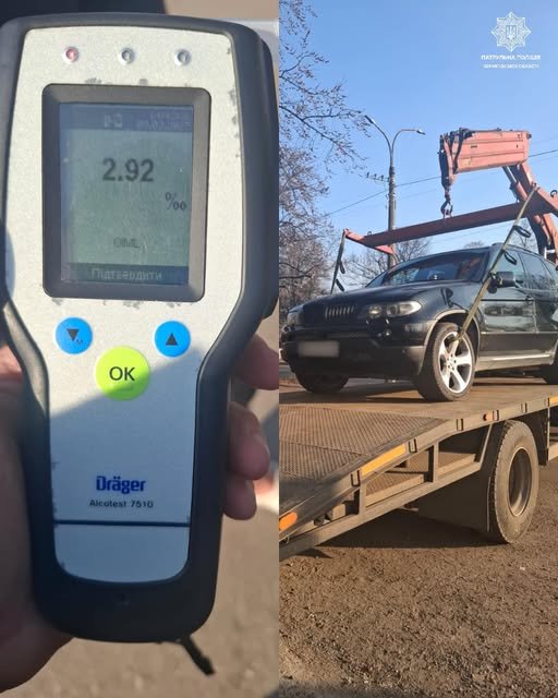 У Чернігові патрульні зупинили водія BMW X5, який керував авто у стані алкогольного сп’яніння. Результат — 2,92 проміле. Чоловік уже позбавлений прав за п’яне водіння, але знову сів за кермо. Поліцейські склали на нього кілька адмінматеріалів, а автомобіль евакували на спецмайданчик.