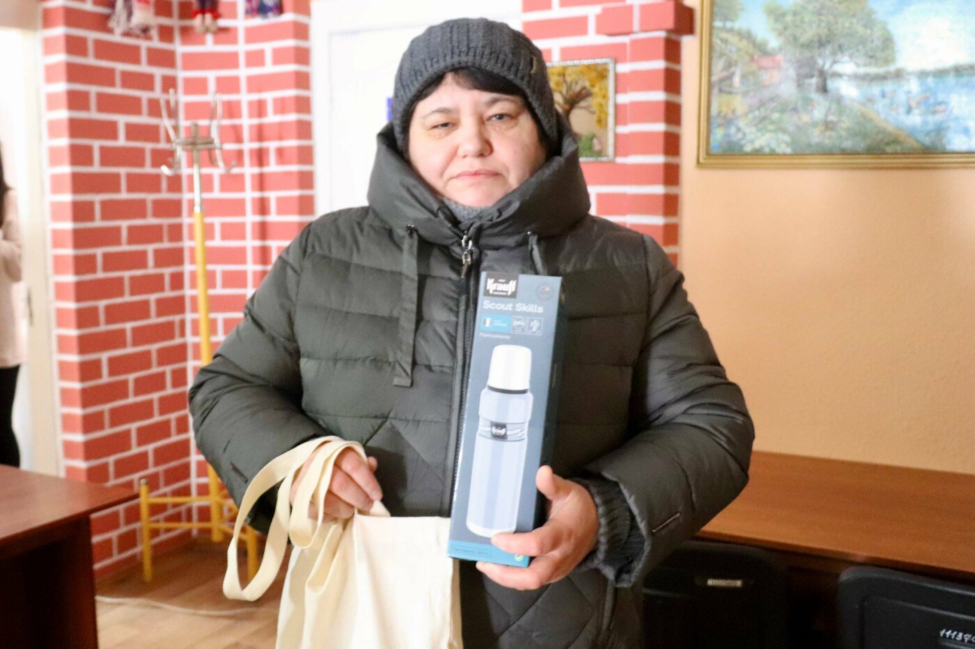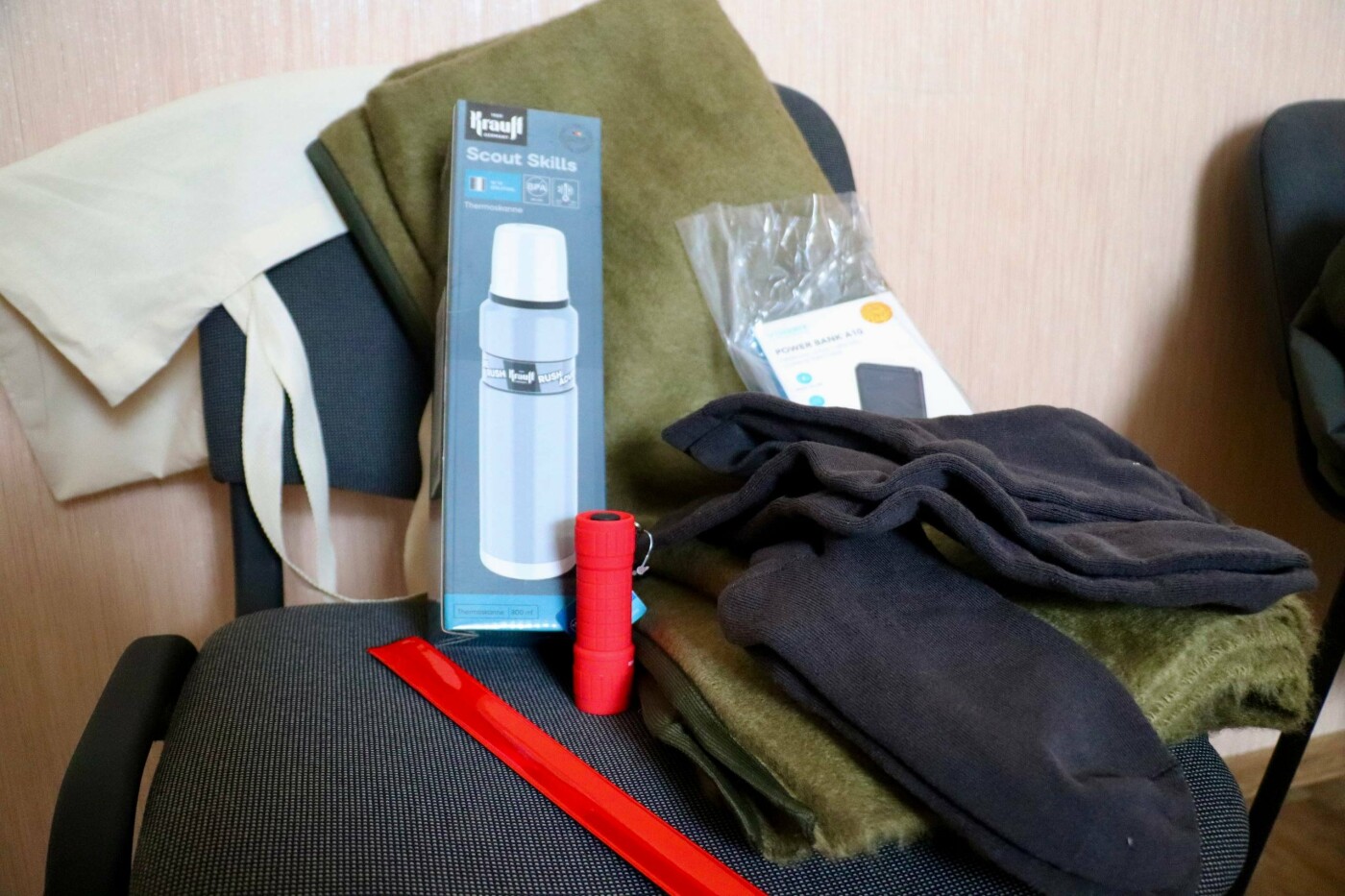До набору входять павербанк, ліхтарик, термос, вовняні шкарпетки та ковдра.