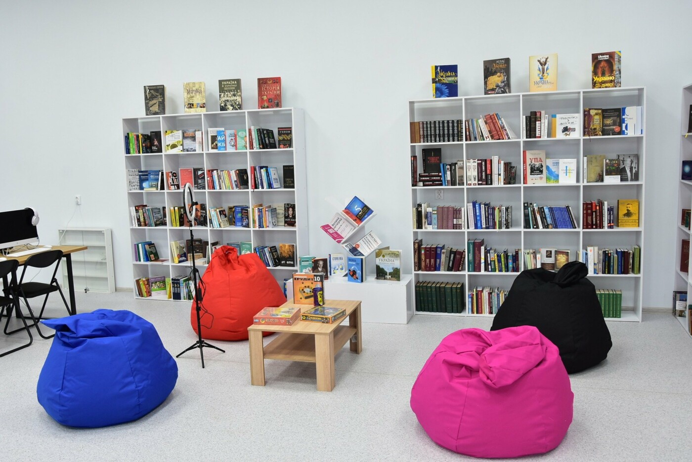А на першому поверсі запрацював дитячий коворкінг, переобладнана зала абонементу для наймолодших читачів і підлітків. Меблі збирали, можна сказати, «усім світом». Щось подарували друзі, запропонували допомогу депутати, стільці та столи привезли поляки, литовці. Хтось подарував настільні ігри. І нині ви побачите тут купу літературних новинок, книги сучасних українських і зарубіжних авторів.