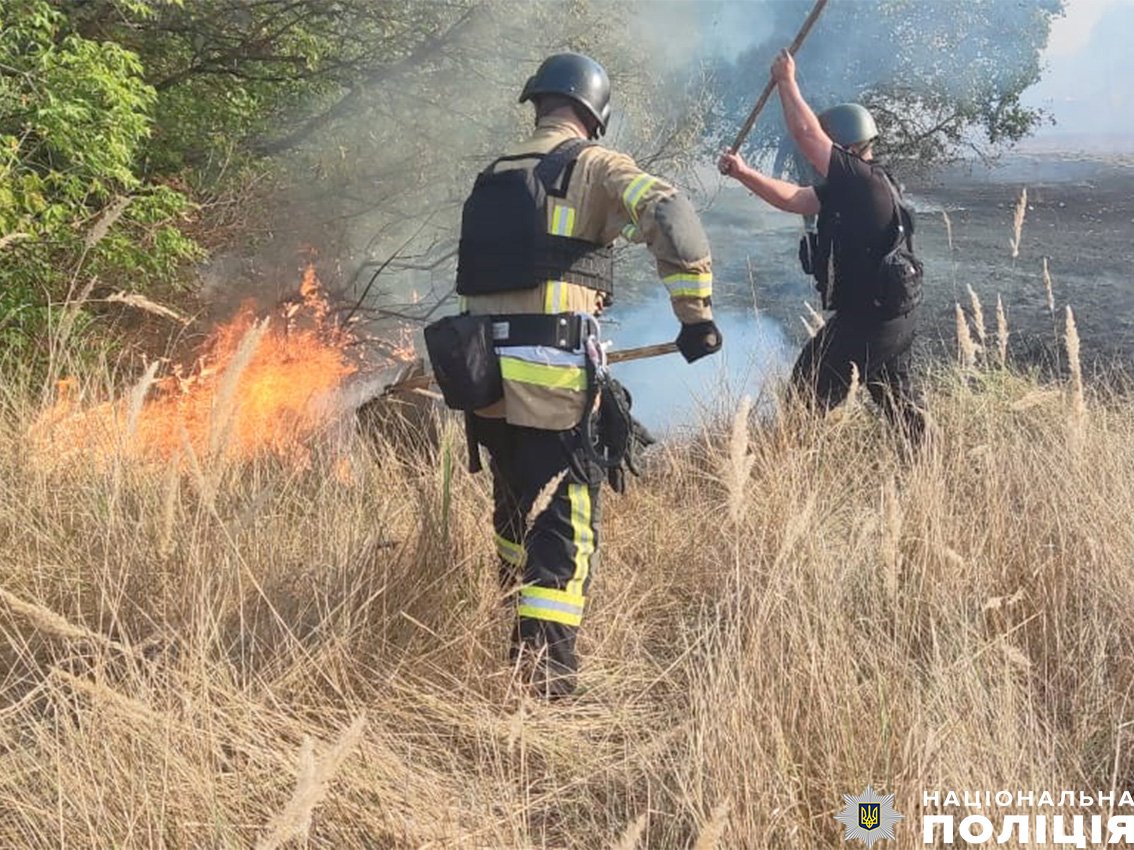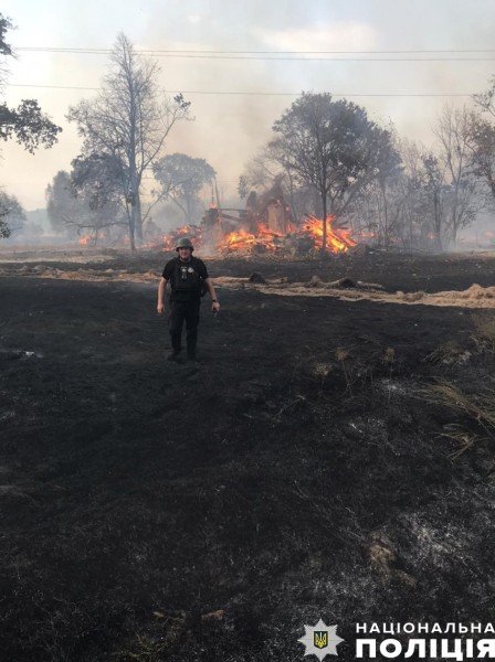 Щоб запобігти перекиданню полум’я на інші будинки мирних мешканців села, поліцейські спільно з рятувальниками та місцевими мешканцями гасили вогонь, яких розповсюдився на площу близько 55 гектарів.