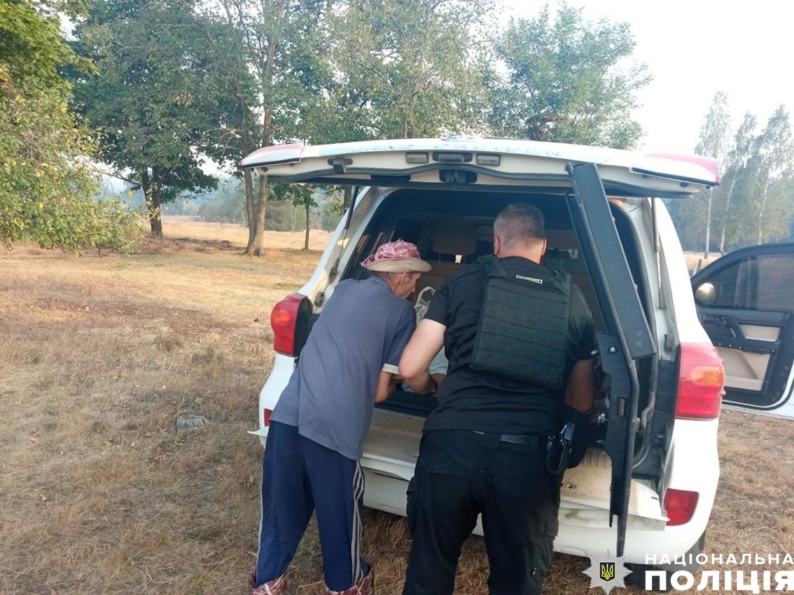 З охопленого пожежею села поліцейські евакуювали місцевого мешканця.