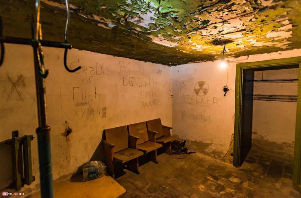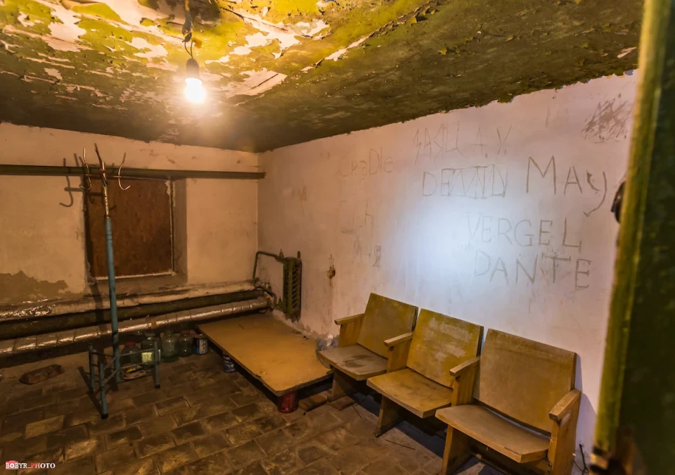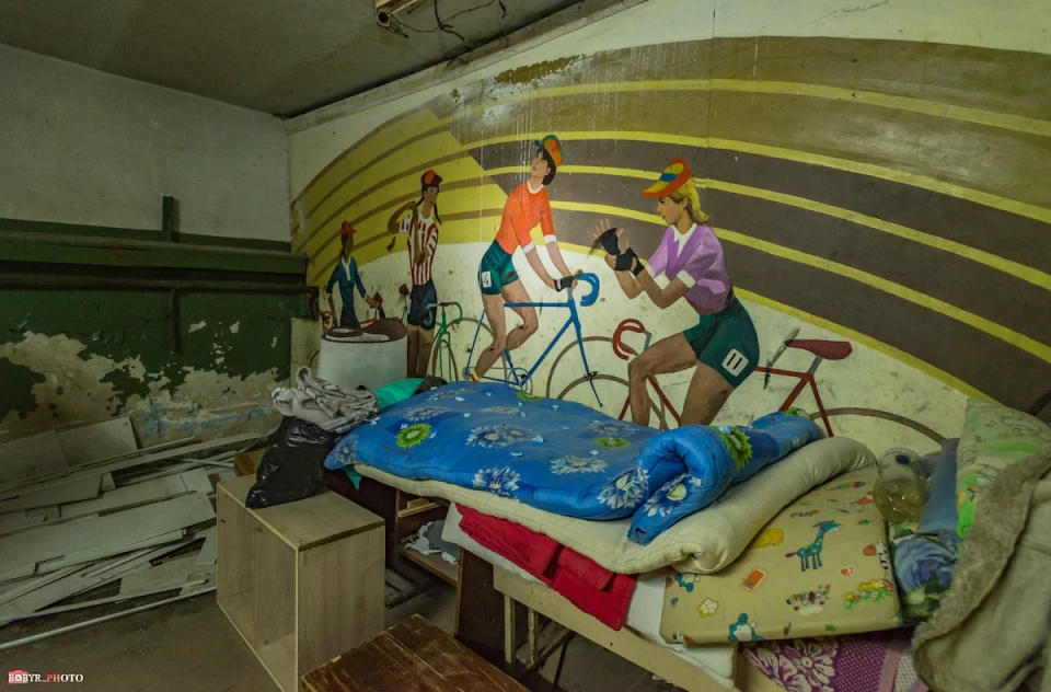 На дверях до кімнат висять ковдри — так тепліше. Стіни вкрили різні написи, а дерев’яні стелажі — матраци, ковдри та подушки. Тут у 2022-му теж жили люди.