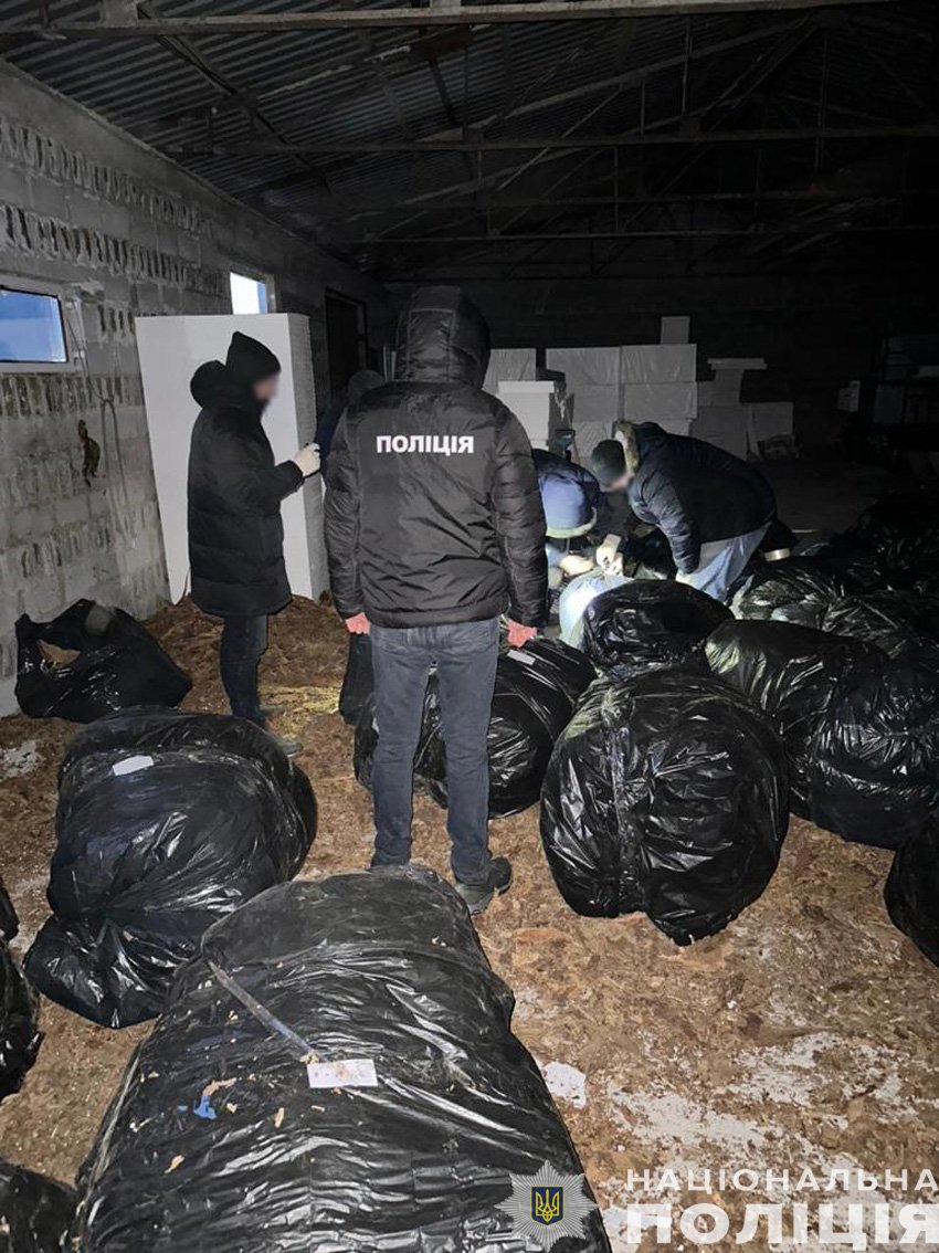 В ході обшуків поліцейські виявили та вилучили понад 2 тонни тютюну в мішках по 15 кг, майже 4 тонни непереробленого сушеного тютюнового листя, верстат для його переробки, пристрій для скручування цигарок, блокноти з чорновими записами та інші речові докази. Вартість самої лише вилученої сировини оцінюється щонайменше в один мільйон гривень.