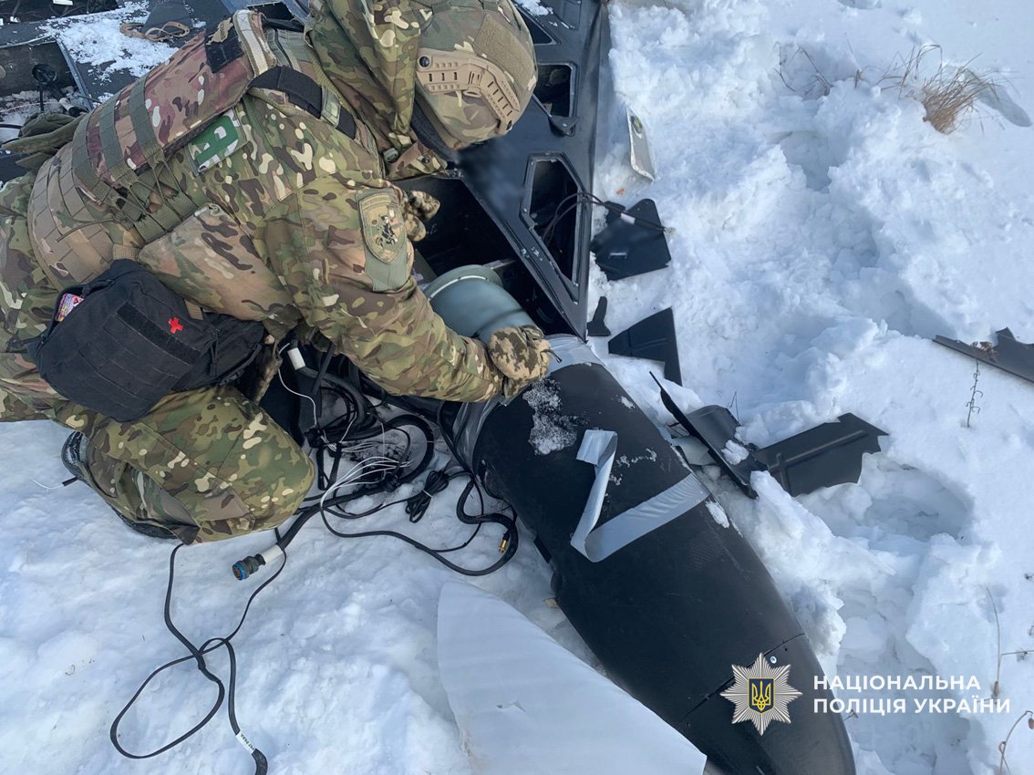 Днями у Чернігівському районі вибухотехніки поліції знешкодили бойову частини російського безпілотника, який був збитий Силами оборони України.