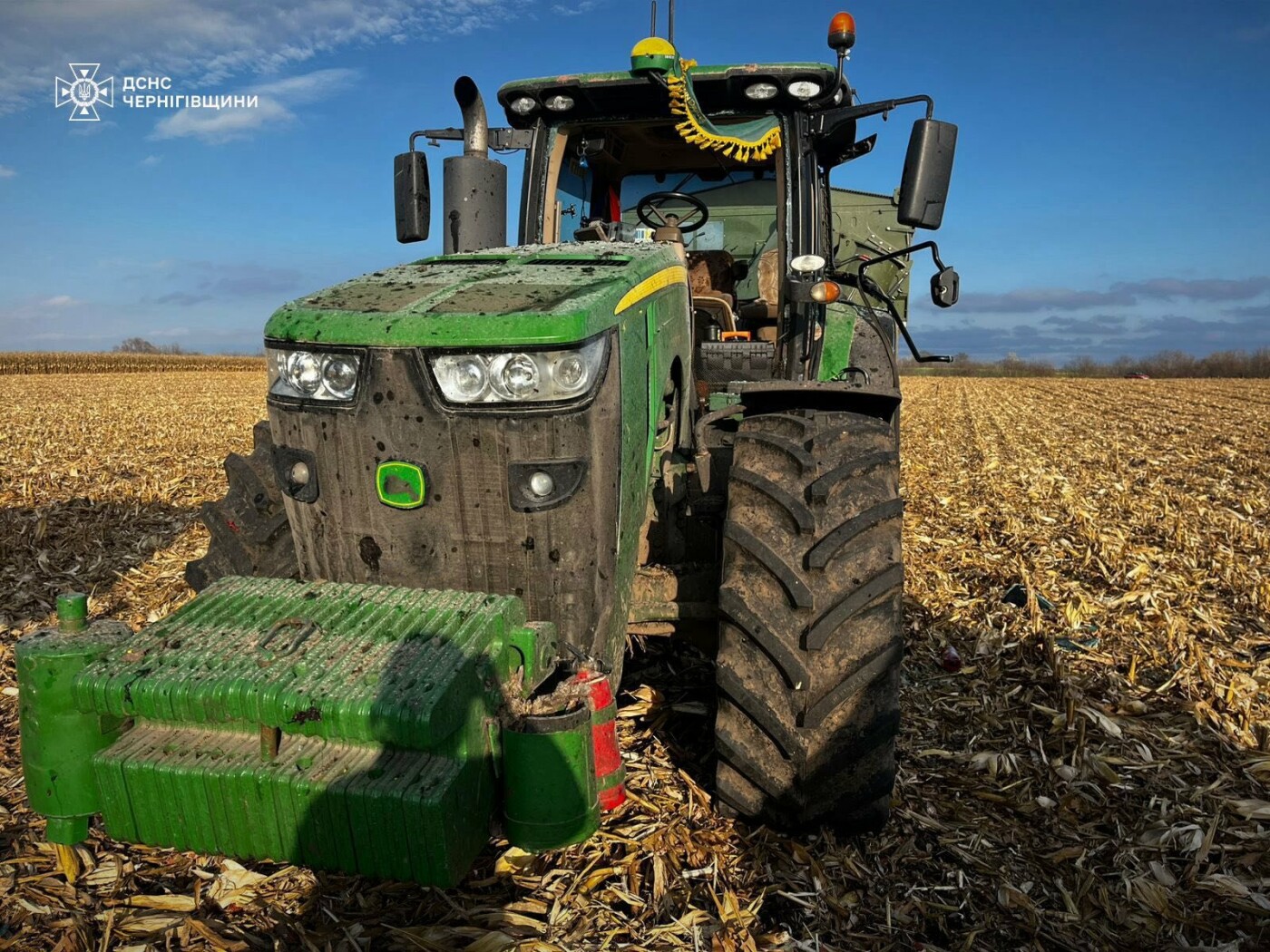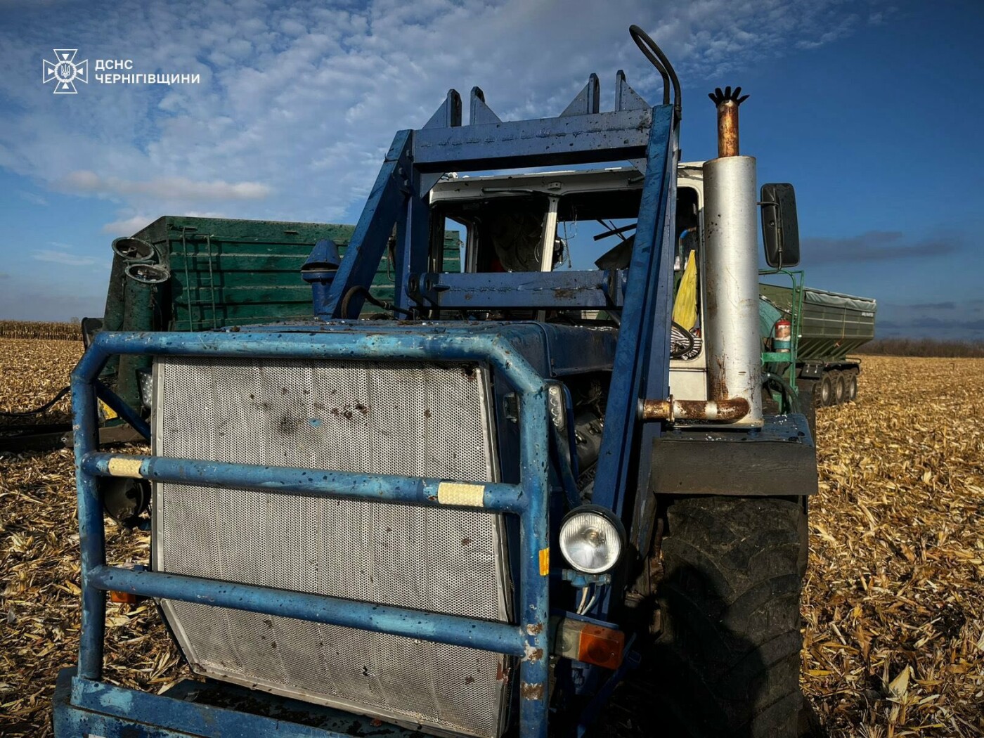 За даними ДСНС у Чернігівській області, вибухом пошкоджено три одиниці сільськогосподарської техніки.