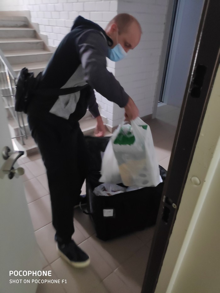 — Це середня цифра, — пояснює 42-річний кур’єр Олександр Максименко, який привіз продукти у величезній сумці чорного кольору, розфасовані у три фірмові пакети. Буває і більше, якщо свята, або ще якісь причини пікових навантажень.
