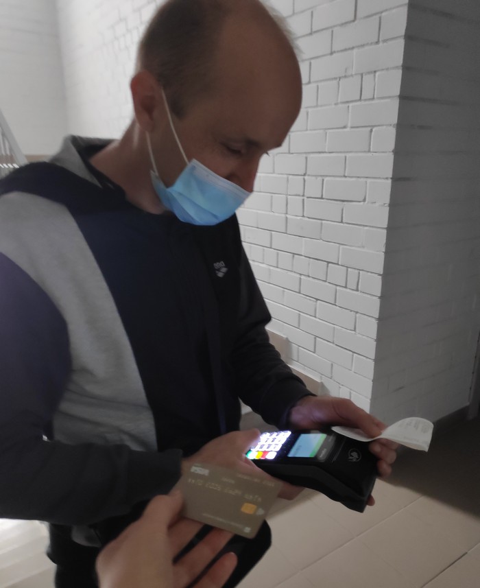 Олександр Максименко, який працює у доставці вже другий рік приїхав до нас з терміналом, через який клієнт може сплатити покупки. Чек видає на руки, наявність продуктів по чеку можна при бажанні перевірити. Додаткову плату за те, що заносять продукти до квартири — не беруть. Також він розказав, що виявляється, поки він збирає продукти та їде, у особистий кабінет клієнта підтягується його ПІБ та номер телефону з фото, аби він міг зателефонувати та прояснити важливі деталі. Ми таку функції до приїзду Олександра не перевіряли, але після прийому замовлення ні в додатку ні на сайті інформацію про кур’єра не побачили, проте є функція, через яку на нього можна поскаржитись.