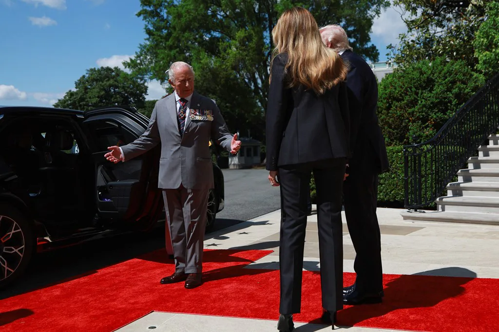 Чарльз вийшов з машини і сфотографувався поруч із Каміллою, а також із Дональдом та Меланією Трамп.