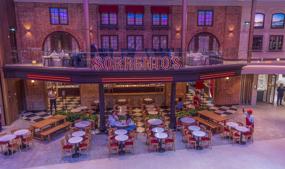 По словам Шнайдера, Royal Caribbean также хотела улучшить свою игру в сфере обслуживания семей, питания и развлечений. На самом верхнем уровне находится клуб Empire Supper Club, который предлагает обед из 8 блюд, включая икру и говядину вагю. Каждое блюдо там сочетается с напитком. Однако большинство закусочных являются повседневными, например семейный итальянский ресторан и кафе Pearl, где готовят свежие сэндвичи, готовые салаты и десерты. Izumu предлагает японскую уличную еду и японское мороженое тайяки, а в Icon есть еще несколько столов Hibachi.