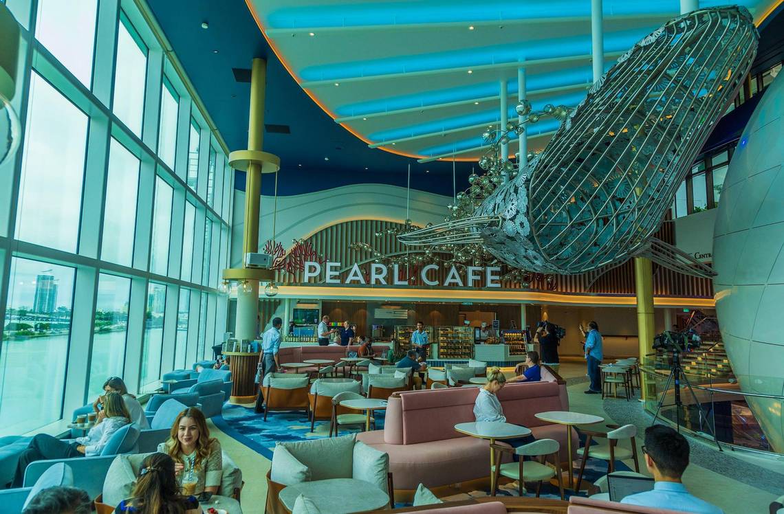 Особое внимание на борту привлекает гигантская пятипалубная сферическая конструкция, названная "Жемчужиной". Прямо под ней находится величественная лестница, напоминающая итальянский дворец, которая ведет гостей к кафе с одной стороны и к латиноамериканскому ночному клубу с другой.